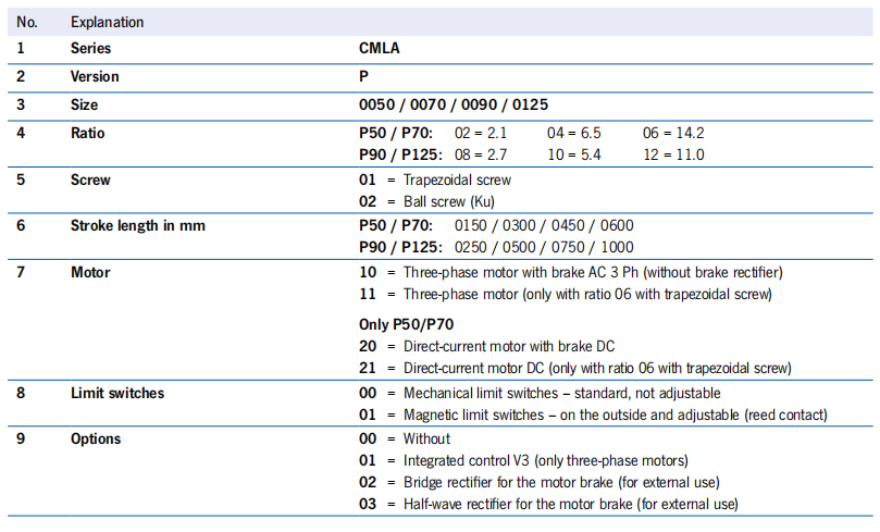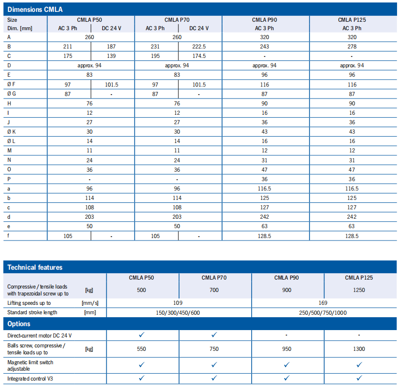 § Three-phase motor AC 3Ph 400 V, 50 Hz (standard). Optional for P50 and P70 DC 24 V DC motor