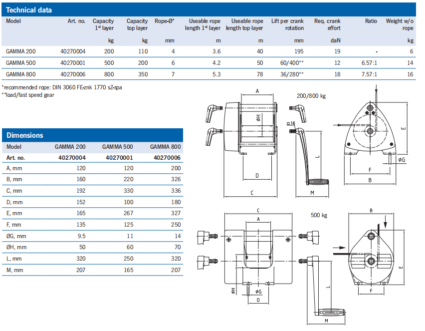 • 500 kg 的承载负载,具有快速齿轮,可承受小负载和更快的线圈和